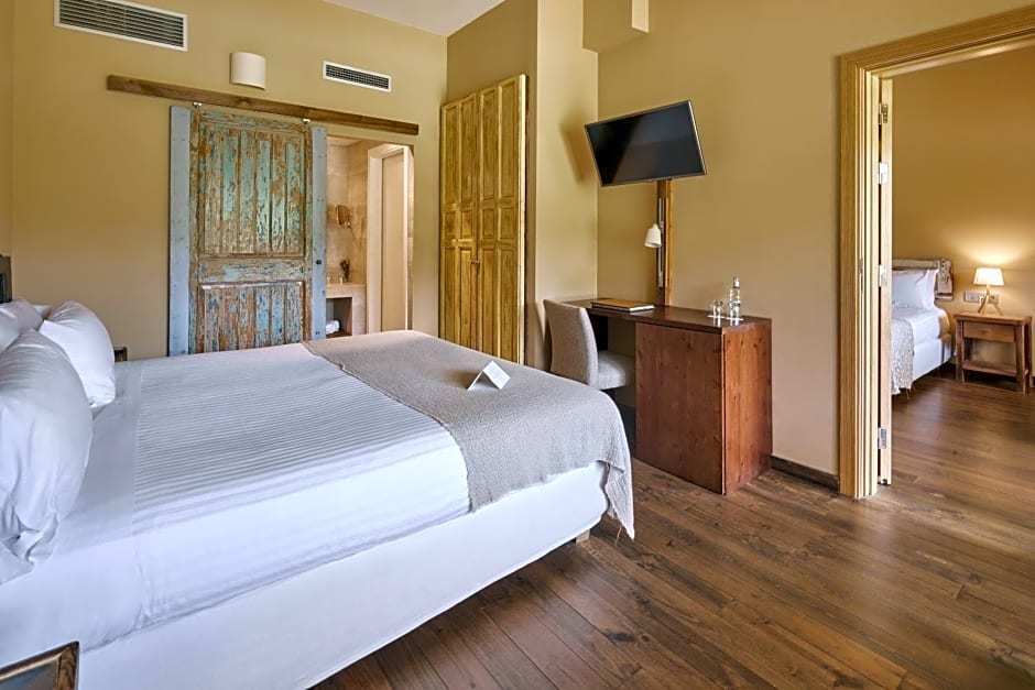 DOUBLE SINGLE USE WITH TERRACE is 215 square feet and includes either 2 single beds 80-130 width or a double bed 131-150 width.